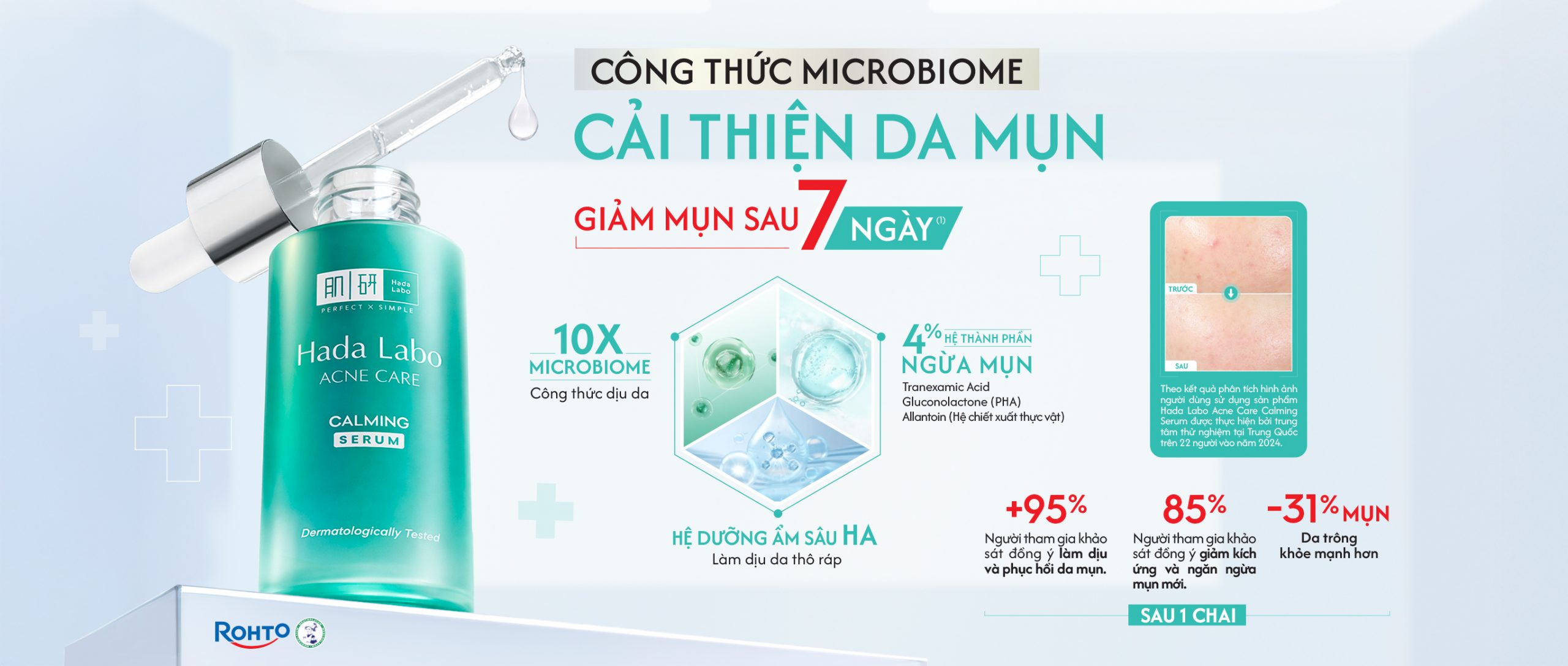 Sạch sâu dịu nhẹ, làm dịu và cải thiện da mụn sau 7 ngày. Số công bố: 001375/26/CBMP-HCM.