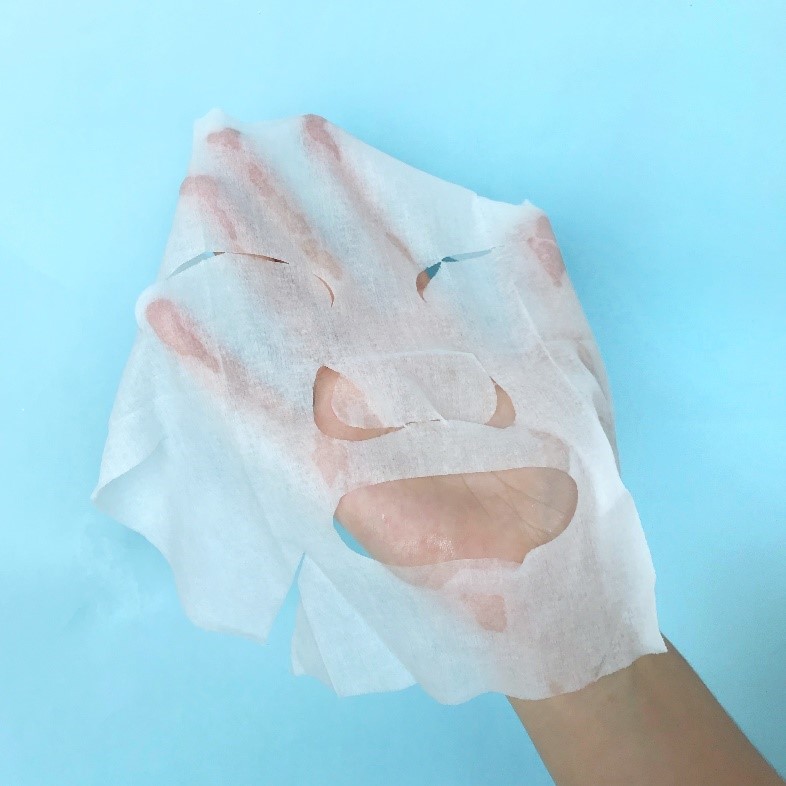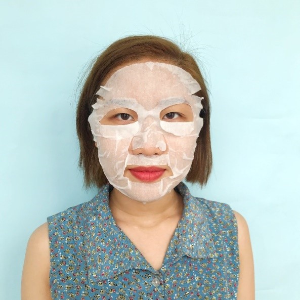 Chất mask bằng cotton, có các nếp gấp thông minh vừa khít với khuôn mặt người Châu Á, có phần mask dành cho mắt nếu bạn nằm thư giãn, còn nếu đang bận việc gì thì hãy gấp phần đó xuống bọng mắt. Có những hôm mình vừa đắp mặt nạ vừa loay hoay làm việc nhà mà em mặt nạ không hề dịch chuyển chút nào. Khả năng ôm sát khuôn mặt quá tốt khiến mình cũng hơi lo lắng về việc da bị hằn sau khi đắp mặt nạ. Nhưng nỗi lo ấy của mình đã bị đánh bay ngay lập tức, vì dù đắp đến tận 15 phút thì da mình vẫn không hề xuất hiện một vết hằn xấu xí nào.